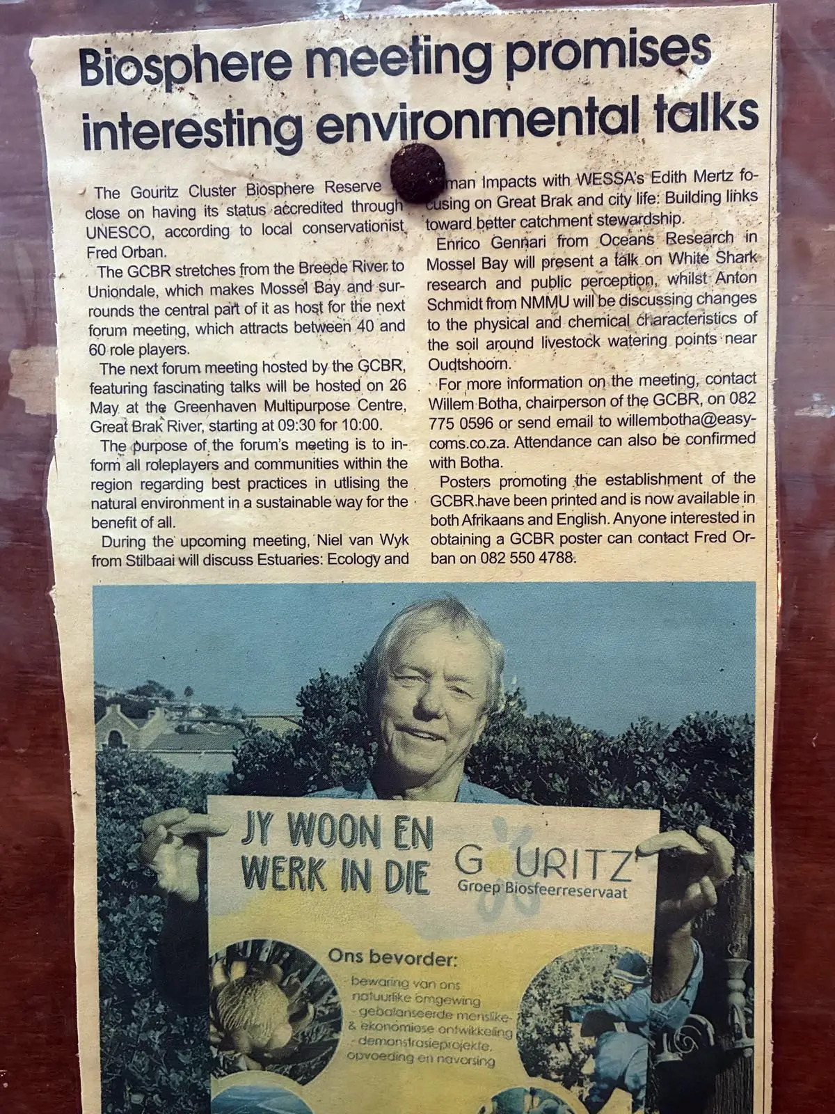 He has led remarkable local discoveries, including ancient elephant bones in the dunes of Springerbaai and was part of the team that uncovered two Portuguese cannons – likely lost from a ship centuries ago, in the town now known today as Kanon. Even today, Fred shares his passion by discussing conservation topics every Thursday on local radio. He remains active and engaged well into his 80s.